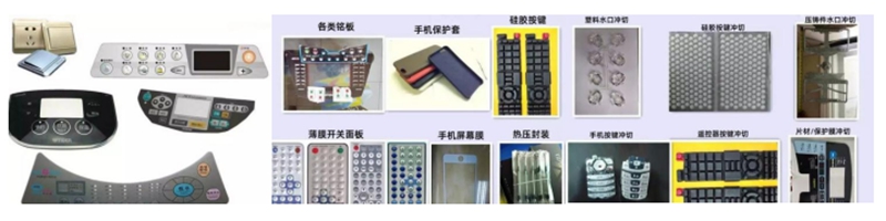 適用于各類PV、PE、PC、PVC、PBC等塑膠片經(jīng)過加熱后成型的產(chǎn)品,薄膜開關(guān)、薄膜面板打凸鼓包、成型等;